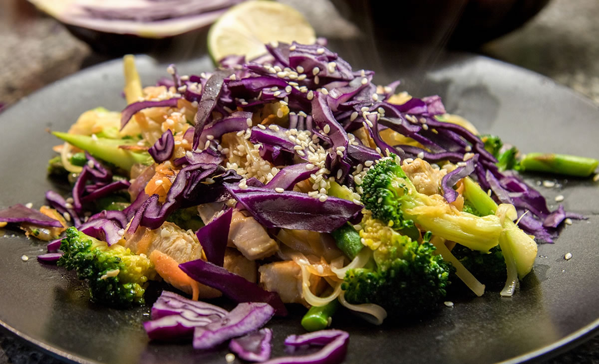 Mix de Salada com Couve roxa, Brócolos , Rúcula e Molho de vinagrette